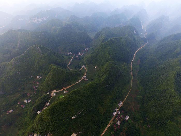 七百弄乡是典型的喀斯特地貌,自然条件恶劣、交通不便等因素严重制约了经济发展。因大石山区修路成本极高,群众筹措的资金有限,工程队不愿意亏本修路。田锦洋和他作为社委会干部的爱人一起决定组织实施保上村通屯公路建设攻坚战。