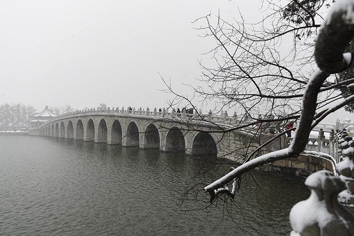 根据国家天文台出版的《中国天文年历》,2015年11月22日23时25分迎来“小雪”节气。从11月21日夜间起,北京迎来较强降雪天气。22日8时40分,北京市气象台发布暴雪蓝色预警信号。 新华社记者陈益宸 摄