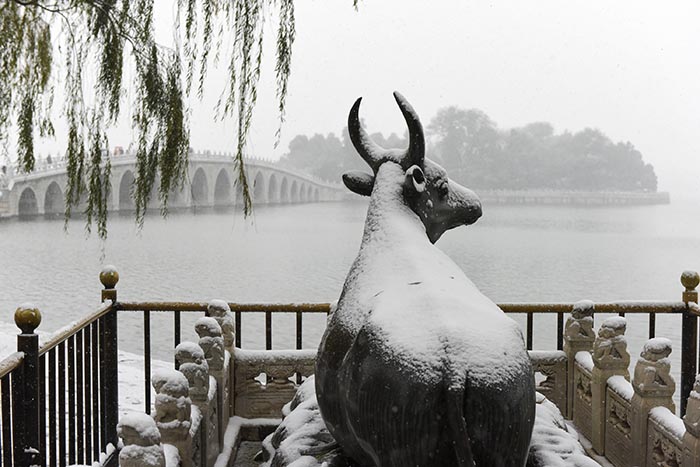 根据国家天文台出版的《中国天文年历》,2015年11月22日23时25分迎来“小雪”节气。从11月21日夜间起,北京迎来较强降雪天气。22日8时40分,北京市气象台发布暴雪蓝色预警信号。 新华社记者陈益宸 摄