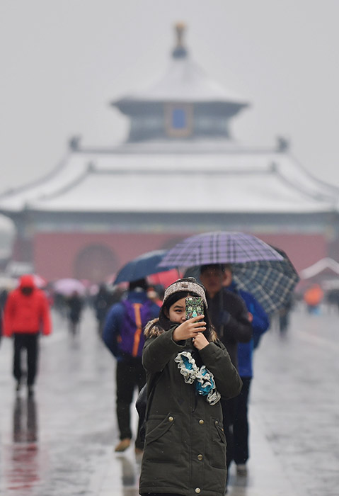 根据国家天文台出版的《中国天文年历》,2015年11月22日23时25分迎来“小雪”节气。从11月21日夜间起,北京迎来较强降雪天气。22日8时40分,北京市气象台发布暴雪蓝色预警信号。 新华社记者李文 摄