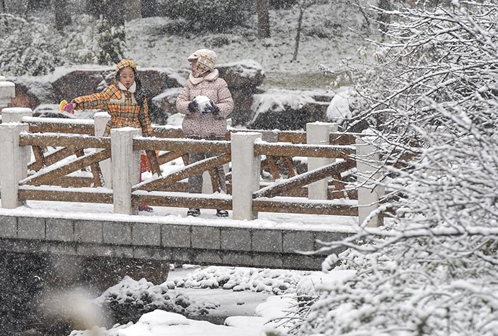 根据国家天文台出版的《中国天文年历》,2015年11月22日23时25分迎来“小雪”节气。从11月21日夜间起,北京迎来较强降雪天气。22日8时40分,北京市气象台发布暴雪蓝色预警信号。 新华社记者罗晓光 摄