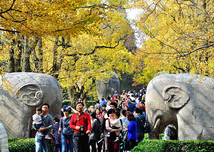 11月13日,人们在南京明孝陵神道上观赏风景。 新华社发(杨素平 摄)