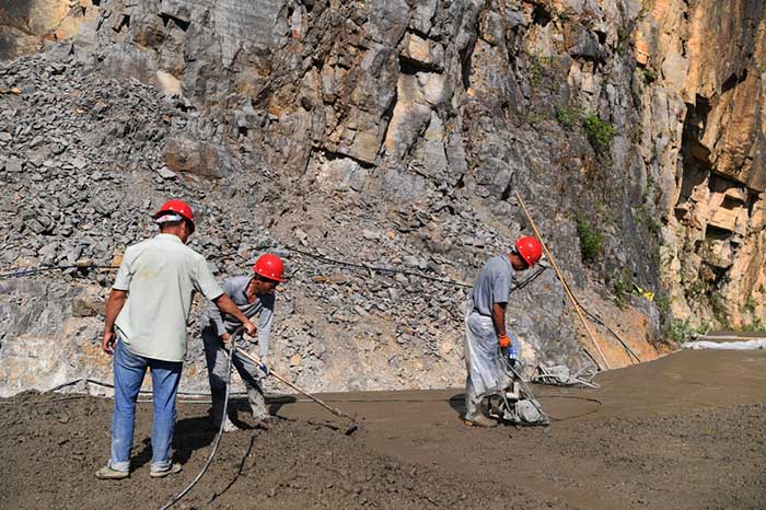 工人对下庄村通往外界的公路进行道路硬化施工(6月7日摄)。 新华社记者王全超 摄