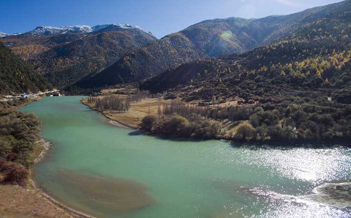 俯瞰稻城河省母乡各瓦村段(11月12日摄)。 新华社记者江宏景 摄