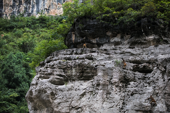 长江支流大宁河小三峡绝壁高耸,环境优美,常有猕猴活动其间。据介绍,随着生态环境日趋优化,猴群迁徙活动范围扩大,这里的猕猴数量已超过3000只。 新华社记者金立旺 摄
