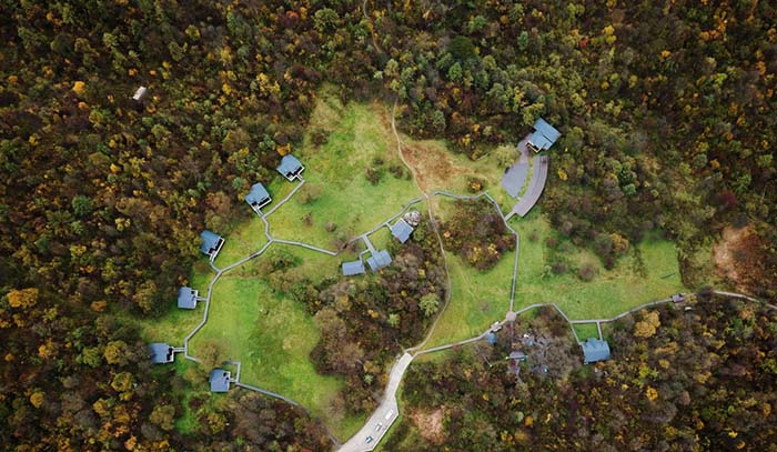 这是云屏三峡自然风景区内的木屋营地(10月18日无人机拍摄)。 新华社记者陈斌 摄