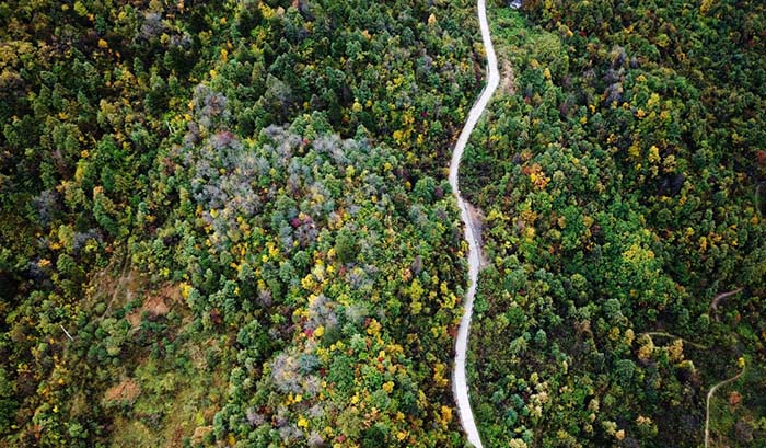 这是甘肃省陇南市两当县云屏三峡自然风景区秋景(10月18日无人机拍摄)。 新华社记者陈斌 摄