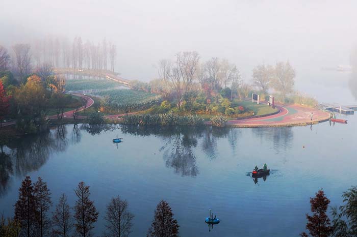 这是11月26日在贵阳市观山湖区阅山湖公园内拍摄的雾景。 新华社记者刘续 摄