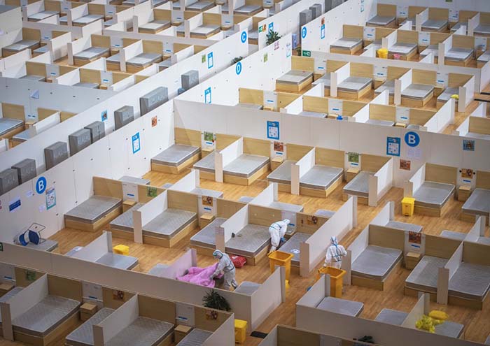 3月8日,工作人员在舱内进行清理作业。 新华社记者肖艺九 摄