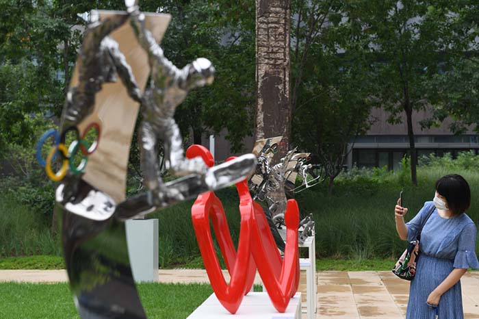 7月13日,参观者在拍摄展出的雕塑作品。 新华社记者鞠焕宗 摄