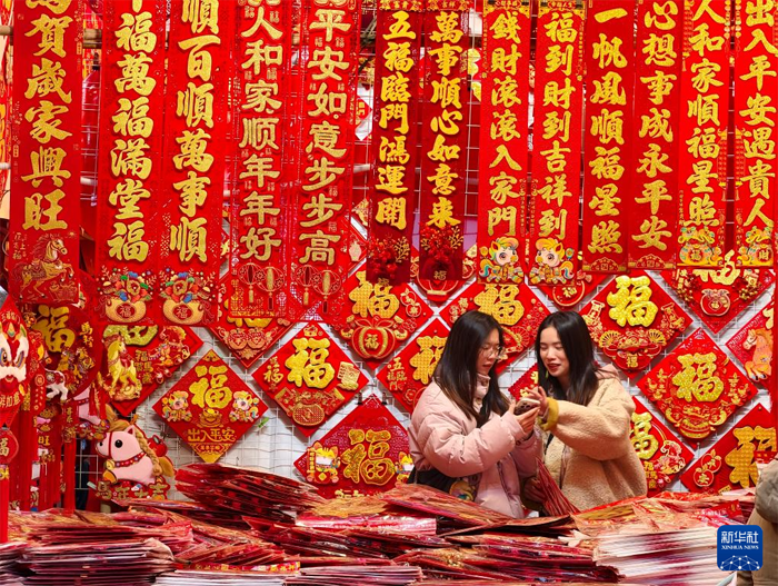 1月24日,市民在广西南宁市上海路年货市场选购新春饰品。新华社发(喻湘泉摄)