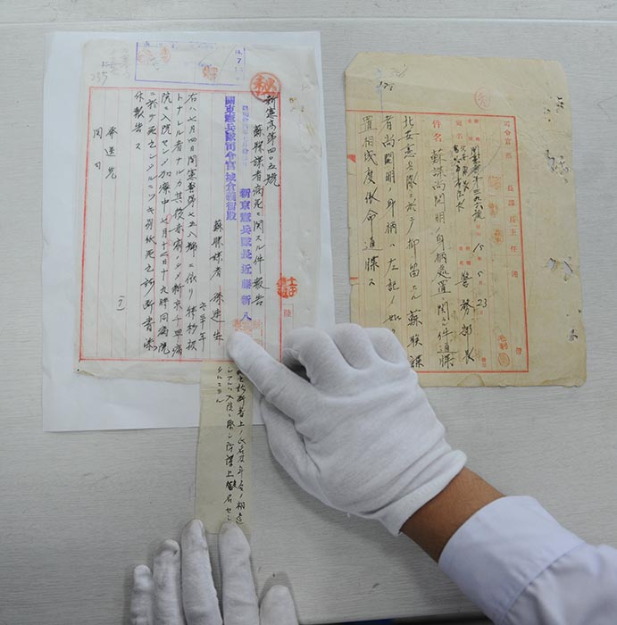 在中国人民抗日战争暨世界反法西斯战争胜利70周年纪念日到来之际,黑龙江省档案馆公布了最新发掘整理的一批侵华日军遗留档案,内容涉及日本移民侵略黑龙江、强征“慰安妇”、向七三一部队“特殊输送”三大板块,其中一部分系首次对外公布。这些档案具有极高的史证价值,为揭露侵华日军罪恶行径提供了铁证。 新华社记者王松 摄