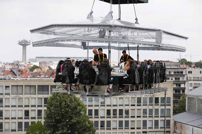“空中餐厅” 6月17日,在比利时首都布鲁塞尔,顾客在“空中餐厅”用餐。