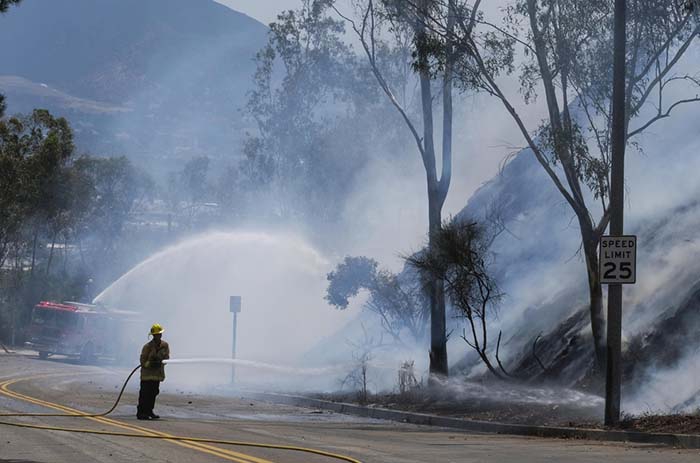 山火 9月3日,在美国加利福尼亚州洛杉矶北郊的伯班克,消防员在灭火。
