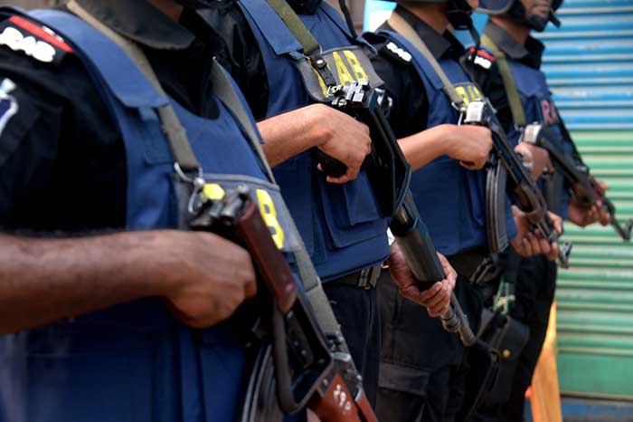搜捕 9月6日,在孟加拉国首都达卡,警察在街头执勤。