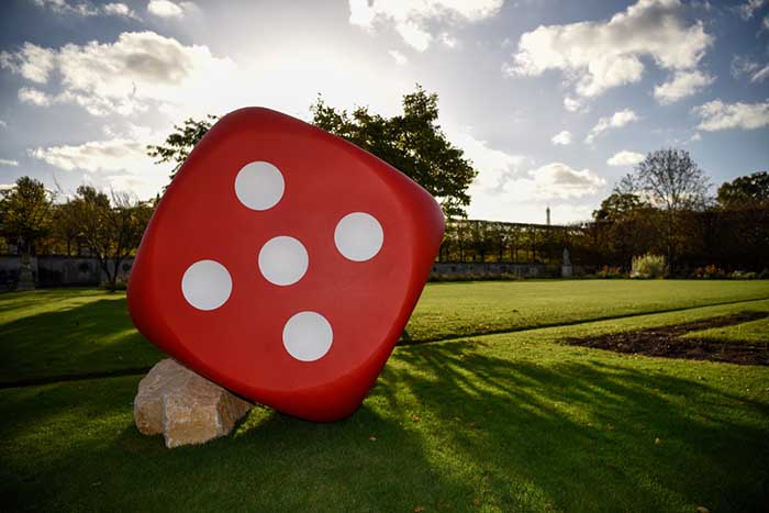 红骰子 这是10月20日在法国巴黎杜乐丽花园拍摄的艺术装置。