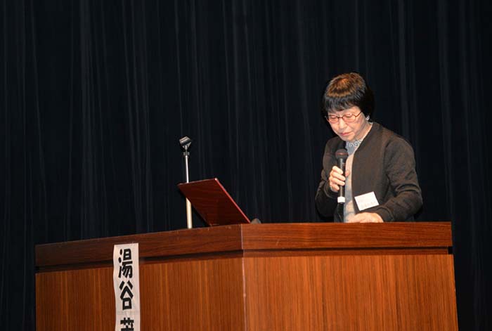 2017年11月26日,南京大屠杀历史学者松冈环在日本大阪举行的南京大屠杀80周年纪念活动中发言。 新华社记者王可佳 摄