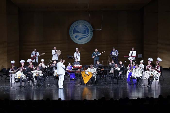 当日,由文化和旅游部主办的上海合作组织成员国艺术节在北京保利剧院开幕。来自中国、吉尔吉斯斯坦、俄罗斯和乌兹别克斯坦的知名民族乐团各自演奏了本国颇具特色的代表性曲目。本次艺术节将持续至6月1日。 新华社记者沈伯韩 摄