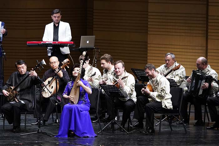 5月30日,参演艺术家演奏中国民乐《喜洋洋》。 新华社记者沈伯韩 摄