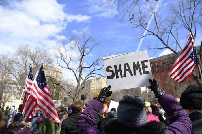美国多地18日举行示威活动,抗议总统特朗普宣布南部边境出现“国家紧急状态”以绕过国会筹集更多资金用于美墨边境修建隔离墙。 新华社记者刘杰 摄