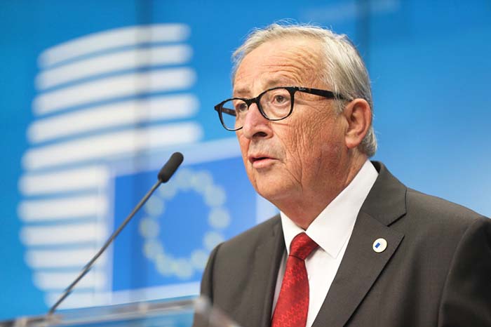 10月17日,欧盟委员会主席容克在比利时布鲁塞尔欧盟总部出席新闻发布会。 新华社记者郑焕松 摄