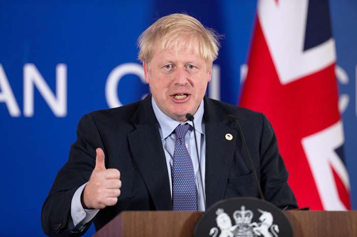 10月17日,在比利时首都布鲁塞尔,英国首相约翰逊出席新闻发布会。 新华社记者郑焕松 摄