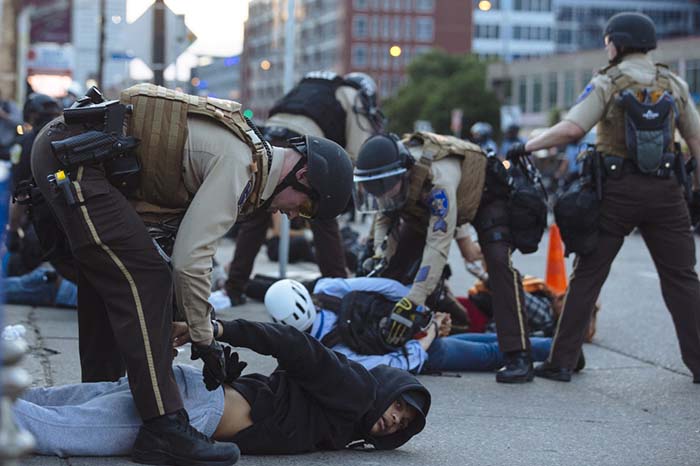 逮捕 5月31日,在美国明尼苏达州明尼阿波利斯市,示威者被警察逮捕。