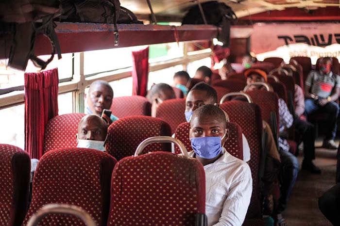 从当天开始,除40个边境地区外,乌干达境内公共交通恢复运营,但乘客不能超过核载人数的一半。 新华社发(阿佳拉·纳瓦达 摄)
