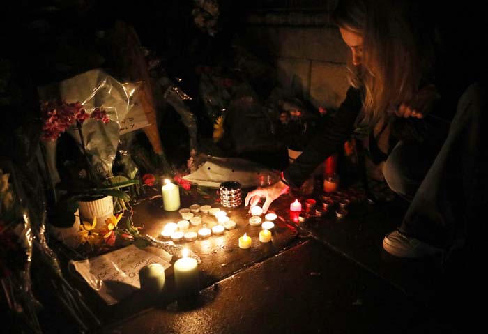 9月8日,一名女子在英国伦敦的白金汉宫外点燃蜡烛。 新华社记者李颖 摄
