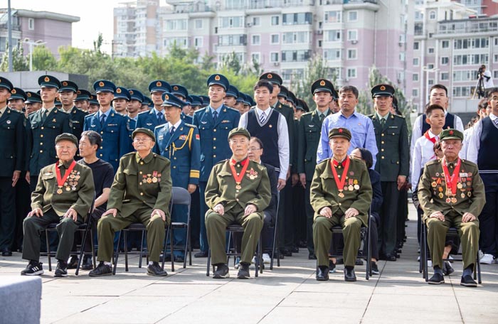 9月18日,老战士代表在勿忘“九一八”撞钟鸣警仪式现场。 新华社发(陈松 摄)