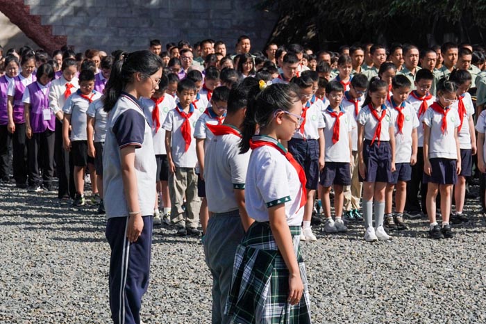 9月18日,在侵华日军南京大屠杀遇难同胞纪念馆,人们向遇难同胞默哀。 新华社记者李博 摄