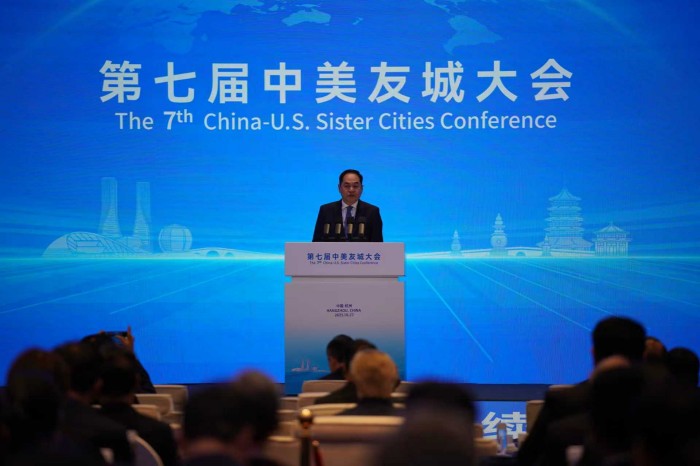 10月27日,以“更紧密的合作 可持续的未来”为主题的第七届中美友城大会在浙江杭州开幕。来自美国多个州的百余位嘉宾齐聚西子湖畔,共商地方合作新机遇,共话中美友谊新篇章。本届中美友城大会由中国人民对外友好协会和浙江省人民政府主办。