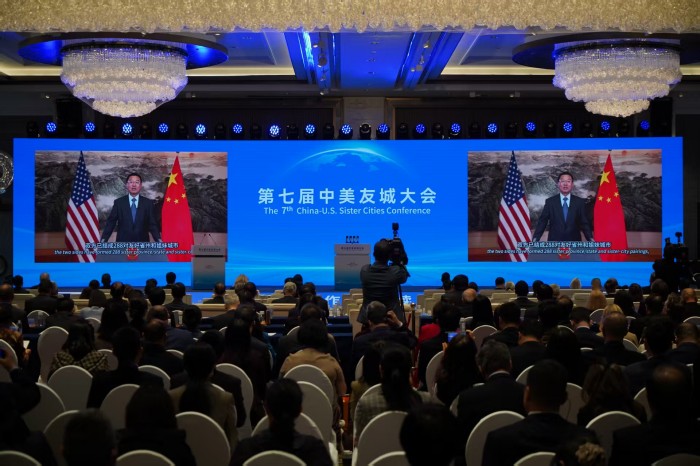 10月27日,以“更紧密的合作 可持续的未来”为主题的第七届中美友城大会在浙江杭州开幕,中国驻美大使谢锋通过视频向大会致辞。 (张巍摄)