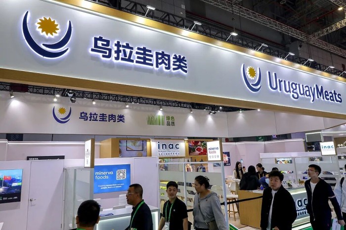 第八届进博会乌拉圭农产品展区。图源:央视新闻客户端