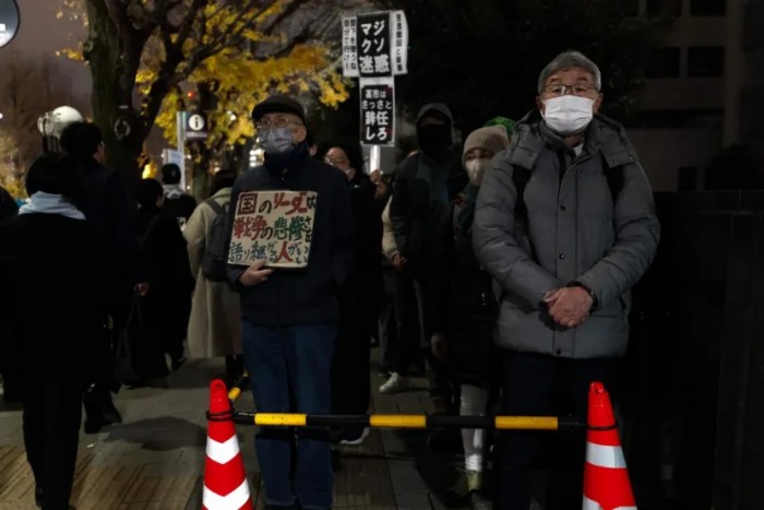 2025年12月23日,日本民众23日晚在东京首相官邸前举行抗议集会,要求首相高市早苗撤回涉台错误言论。(新华社记者 贾浩成摄)