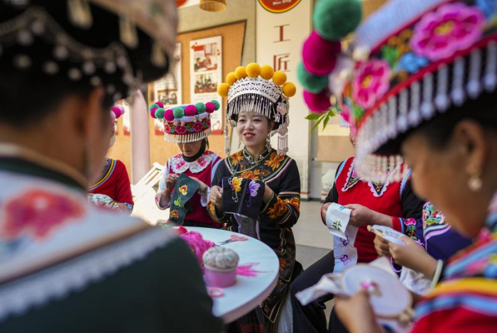 金瑞瑞是云南省楚雄彝族自治州牟定县彝族刺绣协会会长。她扎根乡土,从绣女成长为产业带头人,创立“公司+协会+绣娘”模式,带动当地妇女就业,推动彝绣产业高质量发展。2026年全国两会,金瑞瑞重点围绕“进一步支持楚雄彝绣文化产业实现特色化发展”等议题提出建议。新华社记者陈欣波 摄