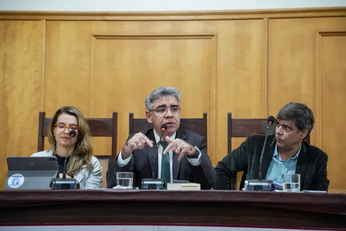 由左至右:里约联邦大学政治学教授迈拉·古拉特、弗鲁米嫩塞联邦大学法学院国际法教授埃万德罗·卡瓦略和弗鲁米嫩塞联邦大学社会学教授塞尔吉奥·卡斯蒂略(拉斐尔·奥诺拉托)