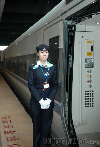 2007年1月31日,CRH高速列车在广深线上进行最后一次试验运行。根据铁道部安排,2月1日起,6组国产CRH高速列车将在广(州)深(圳)线上正式投入运行,最高时速可达160公里。2007年4月18日我国铁路实施第六次大提速以后,CRH高速列车最高运行时速可达250公里。 新华社记者徐清扬 摄