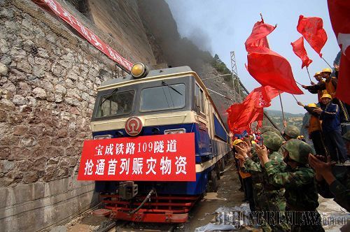 2008年5月24日10时,满载运往四川地震灾区救灾物资的抢977次列车,从宝成铁路徽县至虞关间的109隧道顺利通过,这标志着已中断行车283小时的宝成铁路全线恢复通车。