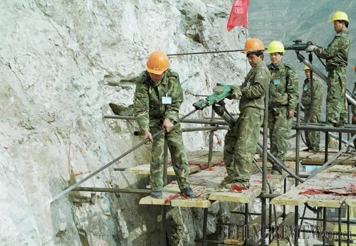 国家重点工程---陇海铁路宝(鸡)天(水)段127.9公里复线建设工程已全面铺开。将于2003年4月竣工的宝天段工程对加快中国西部大开发及提高陇海铁路运输能力具有重要意义。这是全国最佳施工企业郑州铁路建设集团一公司的南集隧道施工现场。 吴春生 摄 (新华社稿)
