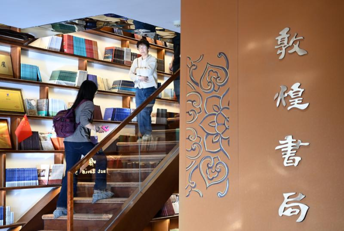 10月11日,游客在敦煌书局参观游览。新华社记者范培珅 摄