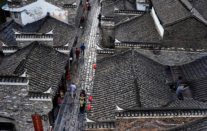 保留下来的连片古民居,飞檐翘角,雕梁画栋,是江淮地区少见的晚清建筑群。白色的马头墙,小青瓦覆盖的双坡屋顶,梁檩椽柱上的雕花彩绘以及黑漆鎏金的各类招牌匾额,无不透溢浓郁的古风神韵,仿佛一幅清明上河图呈现在眼前,让人联想起鼎盛繁荣的徽商时代。