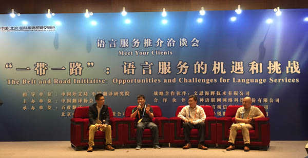 5月31日,第四届京交会语言服务推介洽谈会在北京国家会议中心举办,主题为“‘一带一路’:语言服务的机遇和挑战”。会议由中国外文局、中国翻译研究院指导,中国翻译协会主办,百度翻译与北京中外翻译咨询有限公司共同承办。