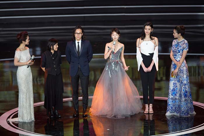 4月16日,本届电影节开幕影片《喜欢你》剧组成员亮相开幕典礼。 新华社记者马宁 摄