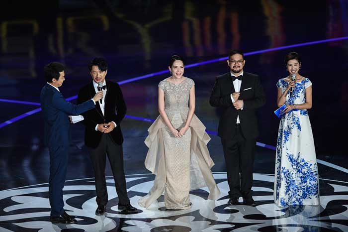 4月23日,闭幕影片《记忆大师》剧组成员亮相闭幕典礼。 新华社记者马宁 摄