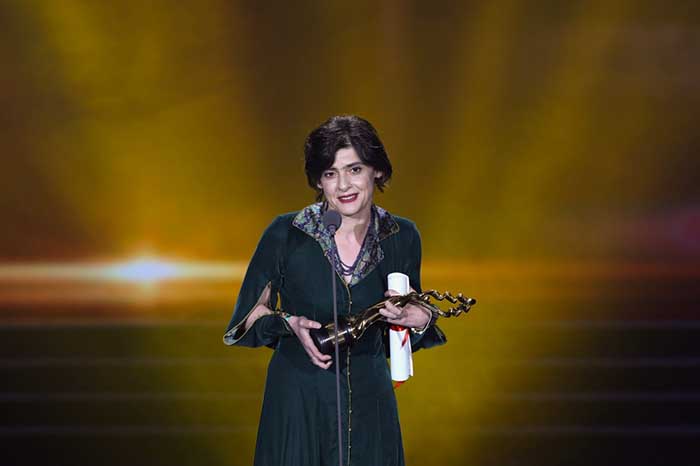 4月23日,获得“天坛奖最佳导演奖”的影片《他人之屋》的导演卢苏丹·格鲁吉泽发表获奖感言。 新华社发(李芳宇 摄)