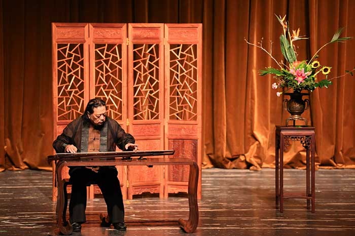 10月8日,古琴家丁承运在艺术节音乐会上弹奏《流水》。 新华社记者翁忻旸 摄