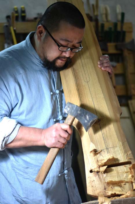 1月7日,王兵在古琴制作作坊里制作古琴木胚。 新华社发(罗星汉 摄)