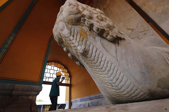9月10日,工人在清东陵景陵大碑施工工地忙碌。 新华社发(刘满仓 摄)