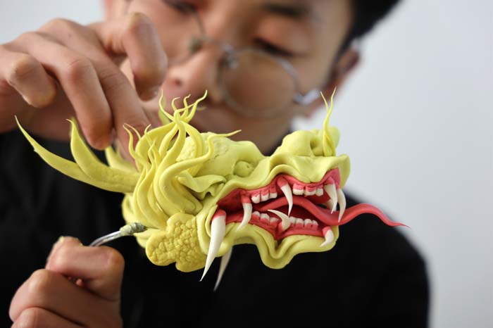 3月3日,山东省滨州市惠民县清河镇的面塑艺人刘增辉在制作春龙面塑作品。 新华社发(初宝瑞 摄)
